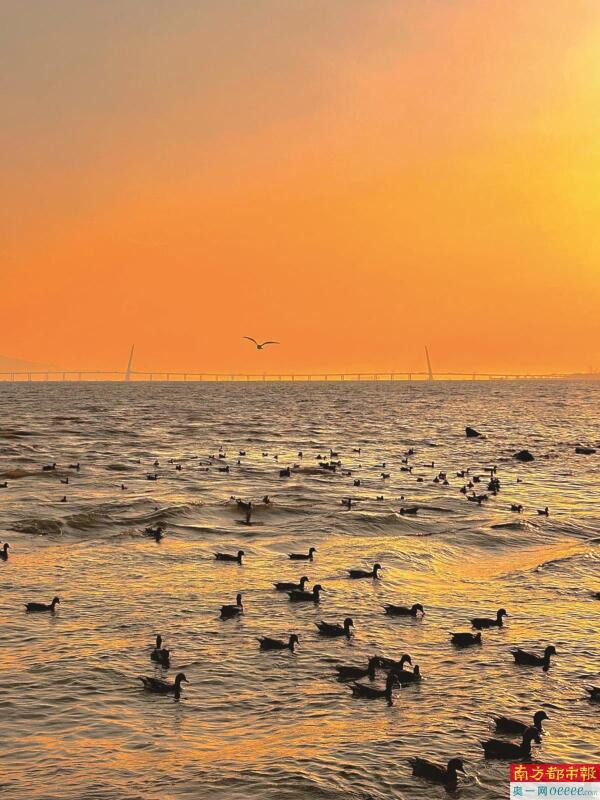 初冬的清晨,深圳湾畔迎来了一批特殊的“越冬客”。成千上万的鸬鹚组成迁徙大军如期而至,在波光粼粼的海面上空集结盘旋。它们成群掠过水面,展翅翱翔的身影与天边朝霞相映成趣,勾勒出一幅灵动的生态画卷。这幅壮观的景象,不仅是一场自然馈赠的视觉盛宴,更是深圳生态保护成效的生动注脚。
